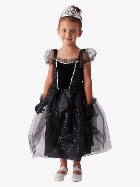 Pour les petites filles qui rêvent de donner la réplique à leurs acteurs préférés, voici un déguisement spécialement imaginé pour les étoiles montantes du cinéma ! Robe ornée de velours, sequins, satin et tulle, gants noirs et diadème, c’est parti pour la montée des marches et les séances d’autographes !
